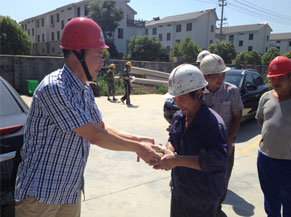 近日气温节节攀升,酷暑考验着坚守在浙江东厦公司的一线职工,更牵动着公司领导的心。7月31日,公司领导王董、朱总、施副总等一行带着防暑降温慰问品来到嵊州和悦时代广场悦公馆、绍兴佳源广场、滨海新城医疗器械科技产业园、柯桥中银国际大厦等工地现场,亲切慰问了坚守在项目部现场的一线职工,询问他们在高温天气下的工作、生活情况,代表公司对一线职工高温下坚守岗位、辛劳工作表示肯定和感谢,叮嘱职工在当前持续高温的不利条件下,做好安全工作的同时,要劳逸结合,注意休息,采取有效的防暑措施,安全顺利地度过高温季节,保质保量的完成工作。领导的一声声问候和赞誉,给一线的职工送去了盛夏的缕缕清凉,他们纷纷表示要加倍努力工作,保障自身安全,稳定生产运行,为建筑工程事业献出自己的力量。